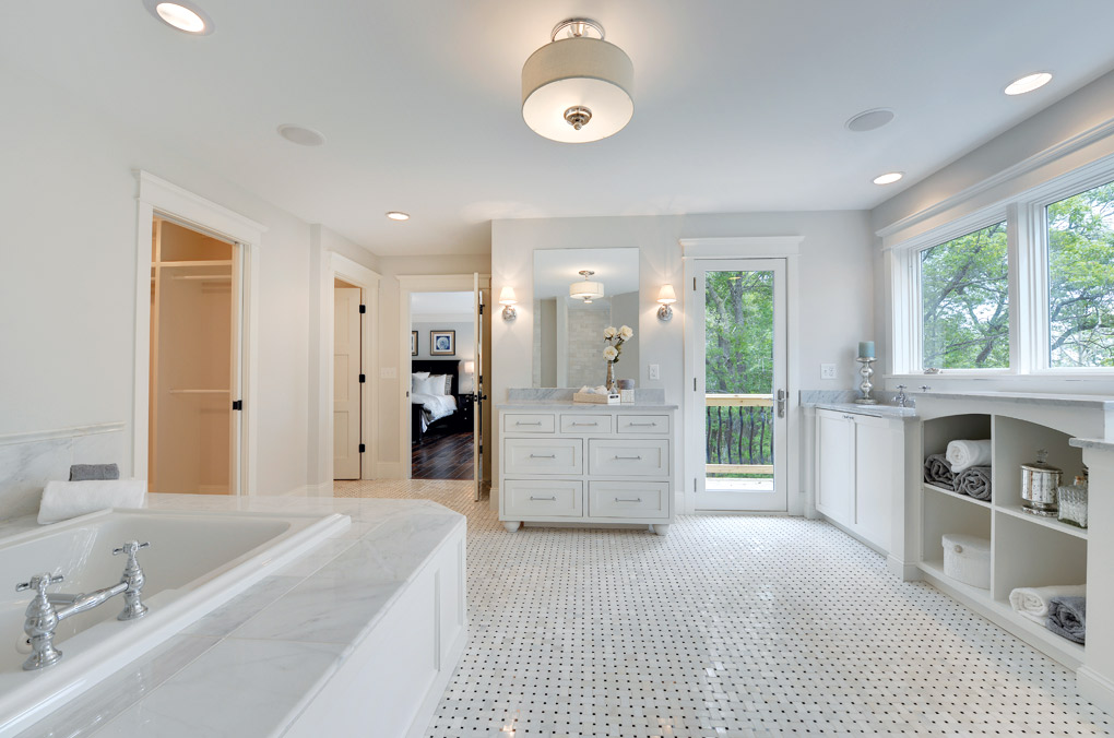 When these homeowners decided to build their ideal home, their thoughts kept returning to the coastal style of the homes they saw during vacations to charming seaside getaways. Thanks to Divine Custom Homes, their vision was realized south of Hudson, Wisconsin. The new home evokes 1950s Cape Cod, with its gray stone and shake exterior, and fresh white enameled woodwork interiors.