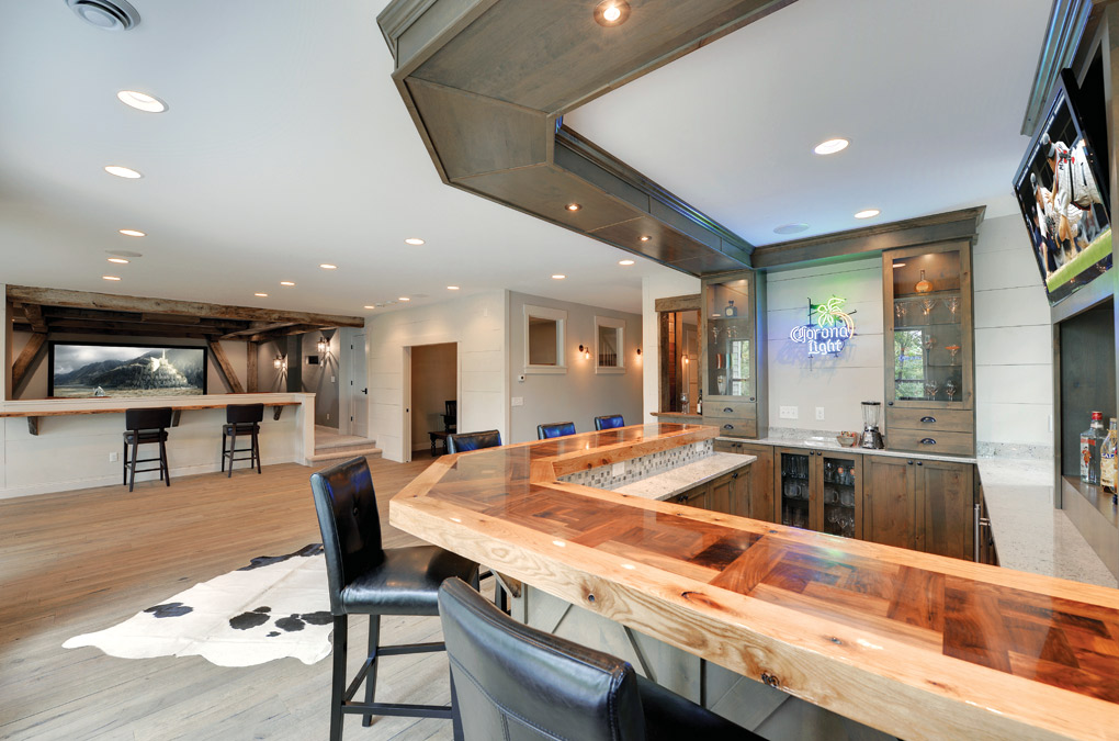 The lower level is made for entertaining, with a sunken TV viewing area, custom polished-walnut bar, billiard space, and home theater. Outside is an expansive patio with a gas grill and gas fire pit.