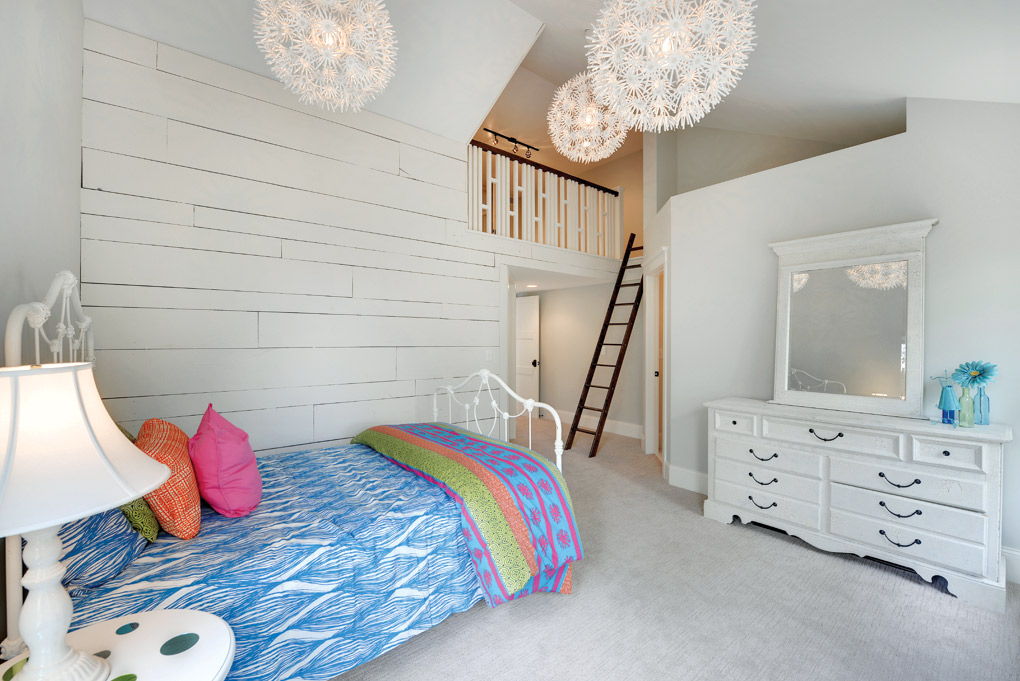 Down the hall, each of the homeowners’ three children has a cozy bedroom with a special bonus: a tucked-away loft—each connecting to the next in the “fourth floor” of the house—accessible only by ladder and featuring 7-foot ceilings. Grownups, beware.